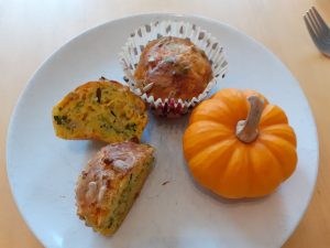 Een pompoenspread en pompoentwists met room- of geitenkaas